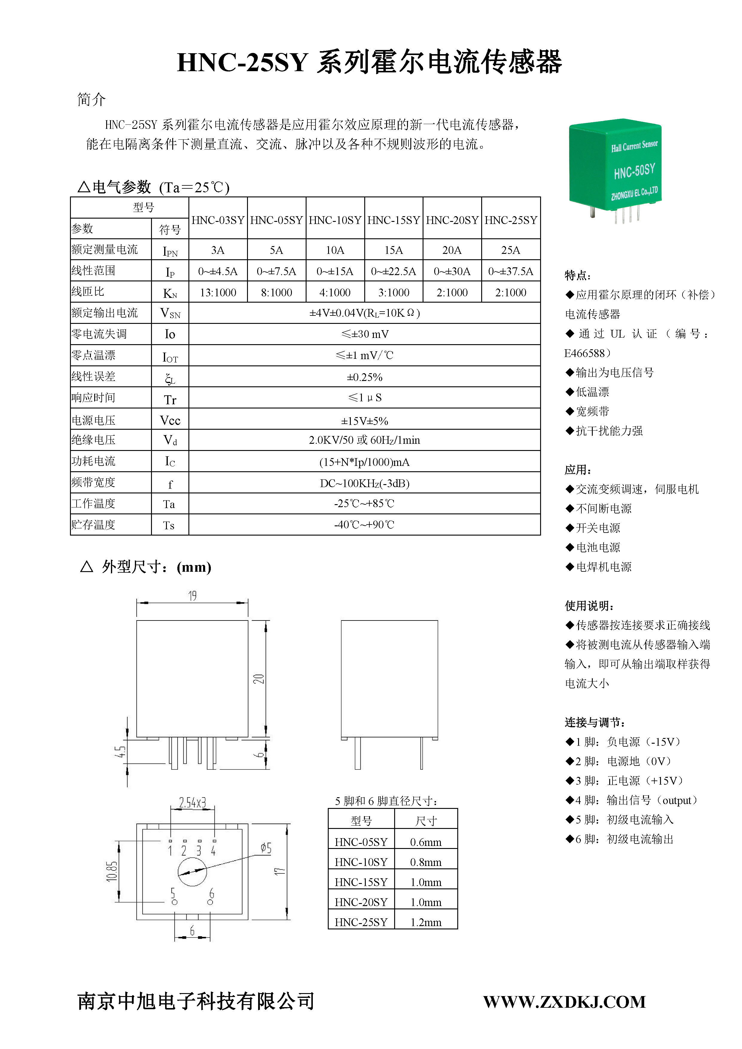 HNC-25SY系列霍爾電流傳感器是應用霍爾效應原理的新一代電流傳感器,能在電隔離條件下測量直流、交流、脈沖以及各種不規(guī)則波形的電流。